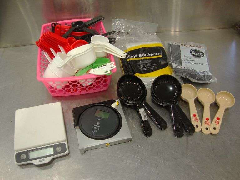 Lot of Assorted including electronic scale, ThermoWorks dishwasher thermometer, measuring cups, etc.