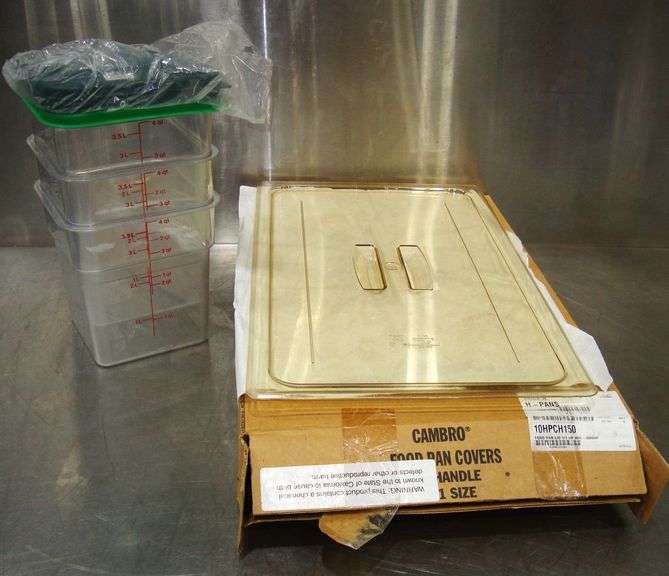 LOT 124 - Lot of Cambro Containers & Covers, includes 3 - 4qt w/covers and 6 New Amber 1/1 Covers