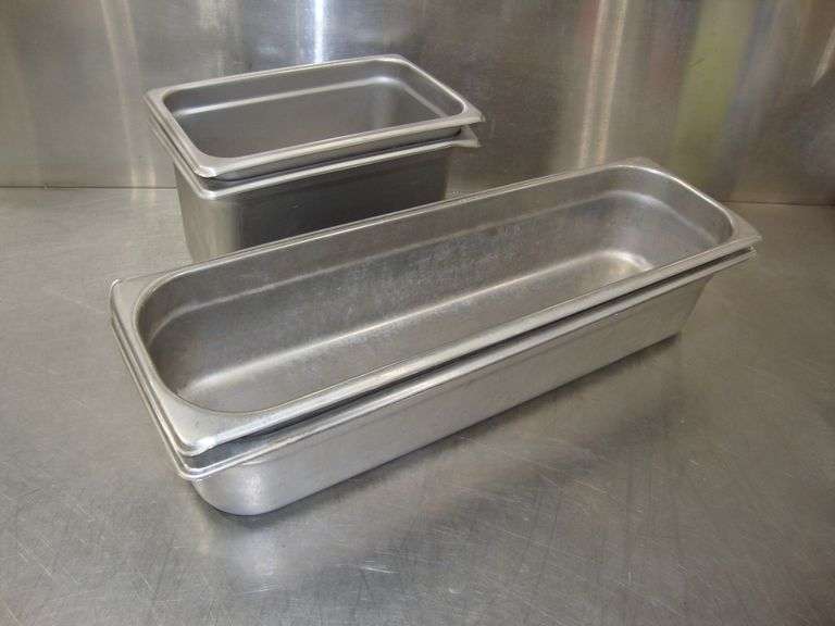 Lot of 2 - 1/4 size x 6" deep pans and 2 - Half-Size x 4" deep long steam pans