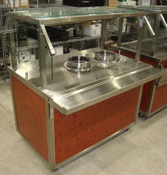 G.A. Systems Speedee-Serv 2-Well Soup Station w/Sneezeguards on casters, NSF, dual Hatco adjustable heated temp wells, overhead lighting, approx. 48" x 30" x 55" tall plus 8.5" tray shelf, 120V