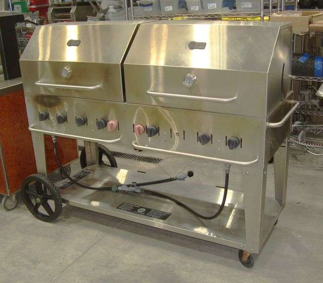 Crown Verity Commercial Outdoor Grill on casters, Model MCB-60, ETL (similar to NSF and passes inspection), currently set up for propane