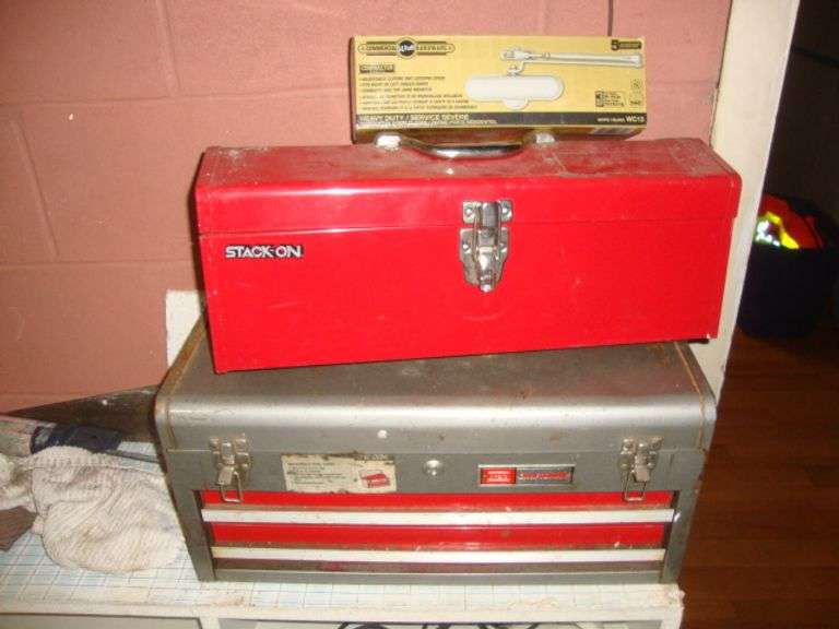 Lot of Toolboxes, door opener, totes, and Christmas tree