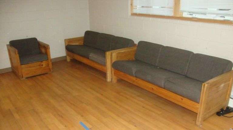 LOT 54 - Pr of Well-Built Solid Fir/Pine Sofas and Sitting Chair Great for deer hunters cabin!