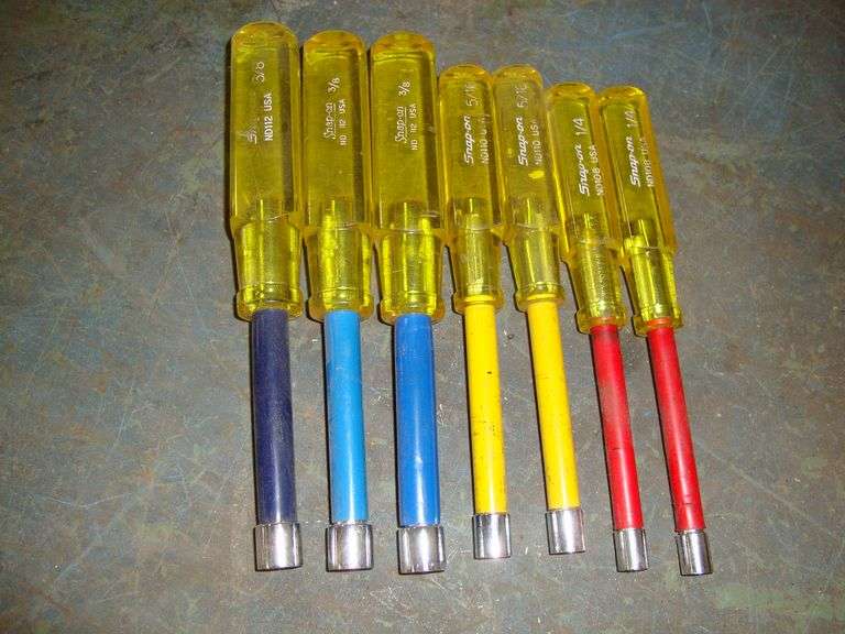 Lot of 7 Snap-On Nut Drivers, 3 - 3/8", 2 - 5/16", and 2 - 1/4"