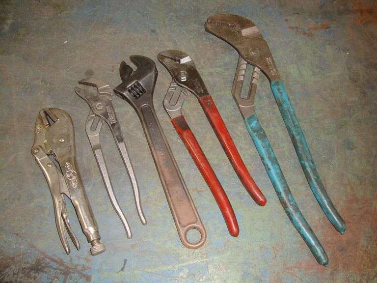 Lot of Assorted Tools including Channel Locks, Vice-Grip, and adjustable wrench