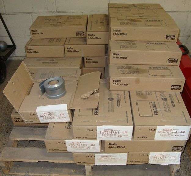 Lot of 17 Cases of Bostitch/Stanley Coils of 1-3/8" Staples with 3/4" leg length, Model SWC74373/4-4M, 6 coils per case