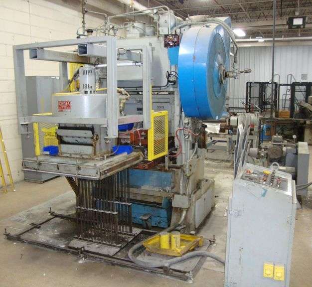 Minster P2-60 Press with Oak FS-M 275 Fin Press, overall footprint approx. 12' x 8'x 9' tall, 460V, 3ph Note-A Charge of $3000 will be added to final bid price for rigging and loading.